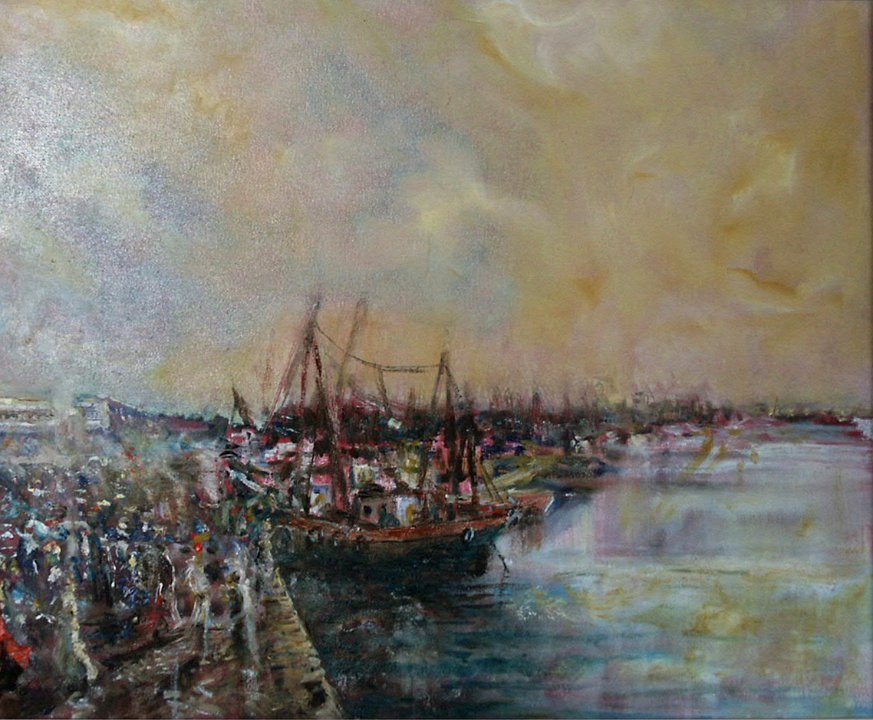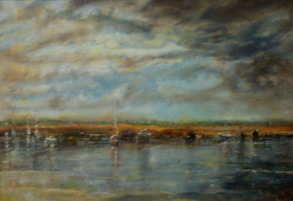 Beffroi Les bouchots huile sur toile, 46 x 55 cmMouillage à Billiers huile sur toile ; 54 x 74 cm 1er prix Paysages marins au salon Europen de Bruges (Belgique) en 2016 (2/3) Disponible à la vente Port d'Agadir Huile sur toile, 46 x 55 cm