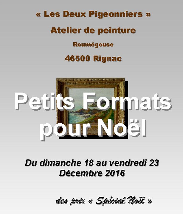 dédiée à des toiles de petits format spécialement pour Noël, occasion de découvrir les paysages de mer peint par Dany Wattier qui a obtenu, cette année, le premier prix en paysages marins au Salon international de Bruges . Ce sera également la dernière exposition publique pour « Equivalhomo » son interprétation du cheval cabré de Géricault qui rejoint une collection privée. Cette œuvre s’est classée 7ème au trophée carrare de St Lo en Normandie, un concours auquel participaient 50 peintres professionnels de toute la France.