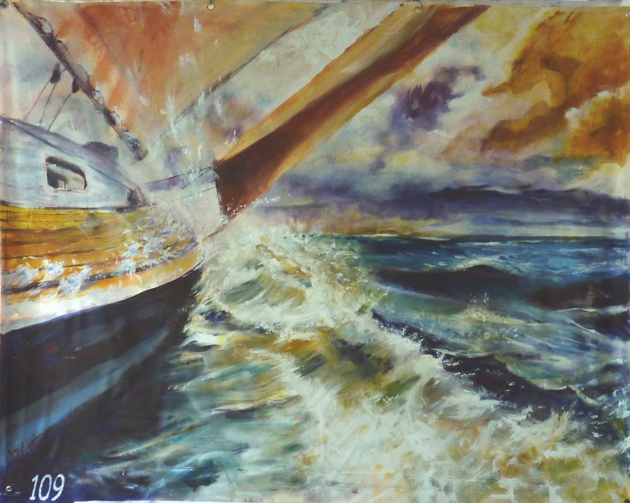 Mon tableau"Régate pour carpentras" de 1,5m x 2 m , portant le n° 109 sera exposé suspendu au dessus d'une des rues de Carpentras