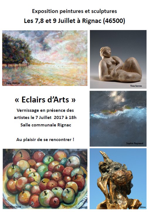 Les 7,8 et 9 Juillet à Rignac (46500) « Eclairs d’Arts » Comme chaque année, à l’occasion de la fête, les artiste de Rignac exposent. J’accrocherai 5 de mes dernières toiles, salle communale.