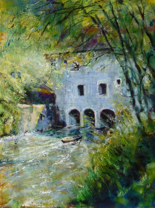 Le moulin de Cougnaguet huile sur toile réalisée en démonstration de stage de 2016 sur site au moulin de Cougnaguet