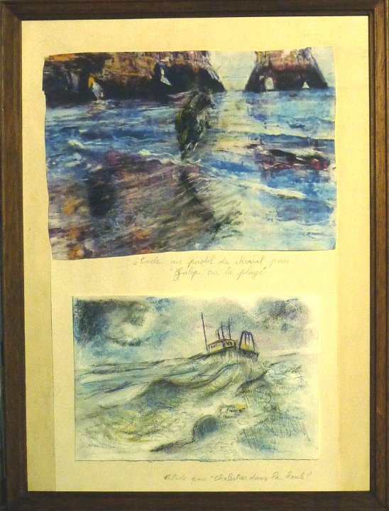 A coté des oeuvres sont exposées leurs études, des croquis, carnets de voyage ou autres réalisés avec des techniques très diverses, sur des différents supports, au moyen d'une large palette de médias (crayon, pastel, aquarelle, fusain, sanguine. ) parfois très improvisés et pouvant aller du mouchoir en papier ...au café.